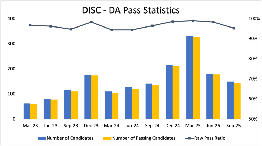 The average pass rate for DISC – DA since 2023 is 95%.