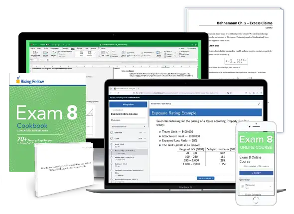 Prepare for Exam 8 with confidence using Rising Fellow. Our online course and study materials are created to help you better understand the syllabus material and practice hundreds of problems so that you’re ready on exam day.